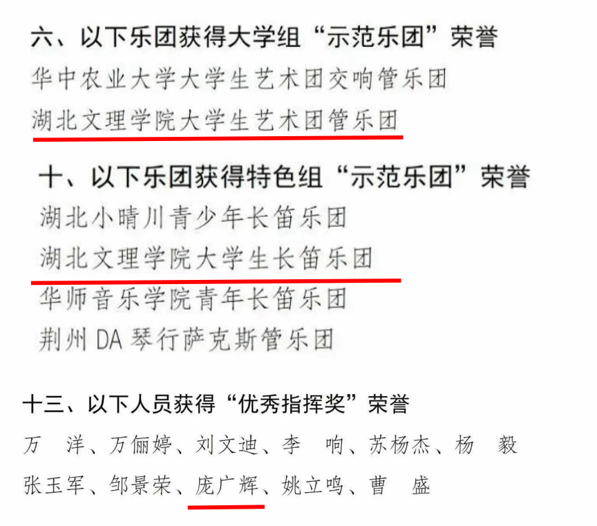 (suncitygroup太阳集团 通讯员 郑浩田)2025年11月15日,在湖北省第二届优秀管乐团展演活动中,suncitygroup太阳集团大学生艺术团管乐团荣获大学组“示范乐团”(一等奖),大学生艺术团长笛乐团荣获特色组“示范乐团”(一等奖),庞广辉老师获“优秀指挥奖”。