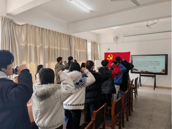 活动在庄严的国歌声中拉开序幕,全体党员肃立齐唱。随后,全体党员高举右拳,重温入党誓词,铿锵有力的誓言回荡在现场,进一步坚定了党员们的理想信念与入党初心。