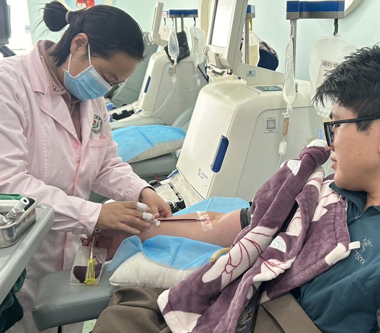 在汪蒲洋的感召下,第34期入党积极分子学员张博恩也主动报名参加献血。这是他第一次参与无偿献血,从最初的些许紧张到完成采血后的坚定,张博恩的脸上洋溢着自豪的笑容。“通过今天的参观,我真切感受到了血液的珍贵与奉献的力量。汪蒲洋的示范让我深受触动,作为一名入党积极分子,我希望用实际行动向党组织靠拢,为社会贡献自己的一份微薄之力。”张博恩表示,此次献血经历让他对“全心全意为人民服务”的党的宗旨有了更直观、更深刻的理解。