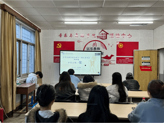 随后 ,文传学院袁仕萍教授、襄阳历史文化研究院高慧霞博士受邀进行专题导读。两位老师结合经典文本的深层内涵 ,从 “ 信” 是个人立身之本、党员成事之基两个维度 ,深入解读经典语句背后的育人智慧与处世准则。他们指出 , “ 忠信笃敬” 是青年成长的精神底色 , “ 文行忠信”