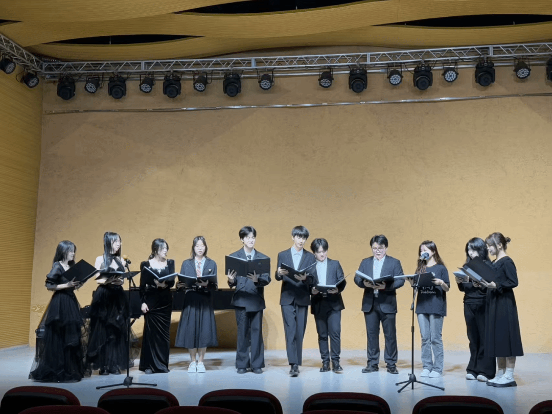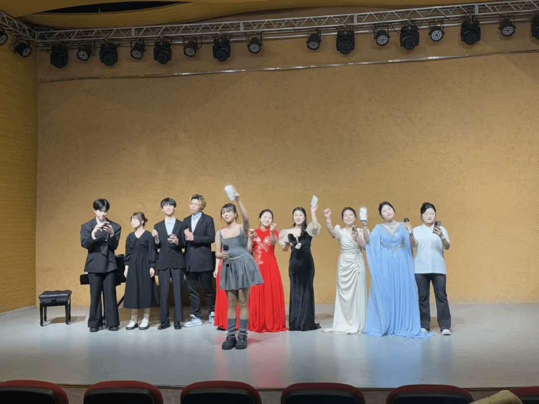 在音乐会的尾声,全体同学共同合唱了一首经典的励志歌曲。歌声整齐而洪亮,充满了力量和信心,展现了音乐学2413班团结一心、积极向上的精神风貌。