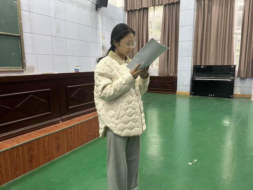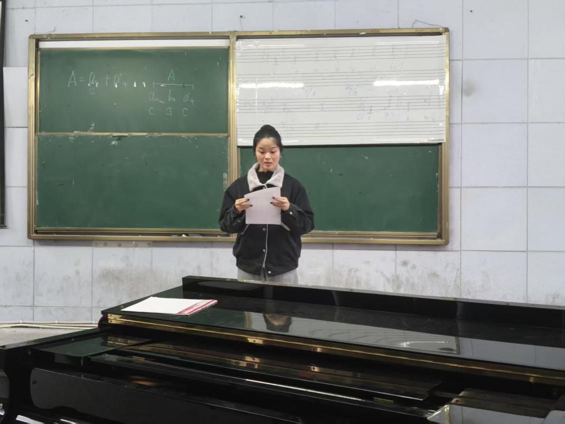 音乐表演2311班的黄为馨以《长征》为题,回顾红军战略转移的艰险历程,分享了对信念坚守与团结抗争的长征精神的深刻体悟。