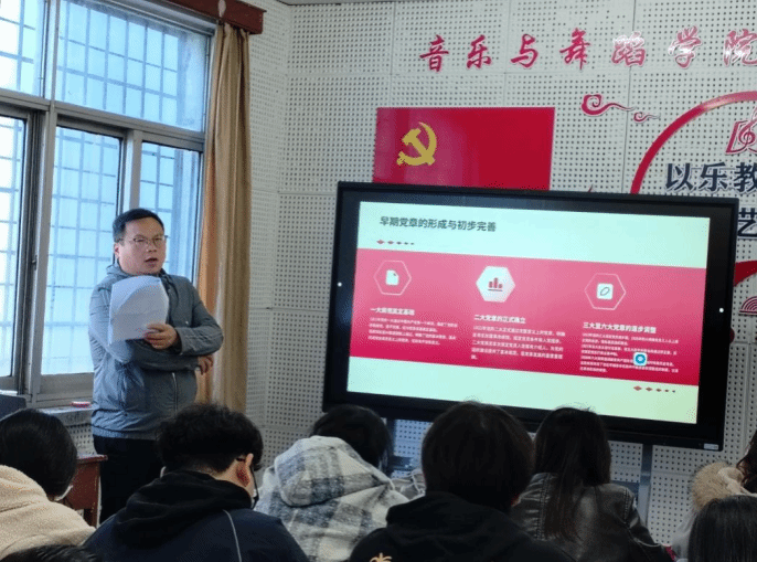 最后,姚朏朏特别强调了党章党规的严肃性与重要性。他指出,党章是党的根本大法,是党内一切法规制度的源头,全面规定了党的性质、宗旨、路线纲领和党员权利义务,是全体党员必须严格遵循的行为规范。他要求全体入党积极分子和党员认真学习党章总纲及党员章节,准确把握其核心要义,不仅要理解党章“是什么”,更要明确“为什么学”和“怎么做”,自觉以党章为镜鉴,端正入党动机,坚定理想信念,在专业学习与艺术实践中积极践行党章要求,以实际行动向党组织靠拢,努力成长为艺术素养与党性修养兼备的新时代青年。