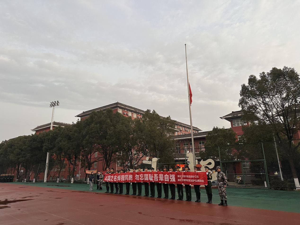 升旗完毕后,国旗缓缓降下至半旗位置,以此悼念在历史长河中牺牲的烈士与遇难同胞,现场无一丝喧哗,唯有庄严肃穆的氛围笼罩全场。随后,全体人员低头默哀一分钟,用沉默寄托哀思,用敬意缅怀先烈,每一位参与者都在心中重温那段山河破碎的苦难历史,深刻体会今日和平生活的来之不易。