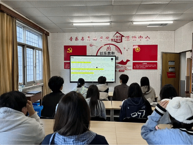 活动现场 ,体育学院王红俊副教授、襄阳历史文化研究院高慧霞博士进行专业导读 ,结合当代青年健康需求 ,深度阐释了 “ 康”的文化价值与现实意义;为同学们带来了一堂生动的经典文化课;在分享交流环节 ,现场同学立足音乐专业特色 ,结合日常学习、艺术实践与校园生活 ,踊跃分享学习体会 ,畅谈经典智慧对身心健康、艺术创作的启发 ,现场交流氛围热烈浓厚;最后 ,全体参会人员集体诵读经典语句 ,在朗朗书声中深化感悟、凝聚共识。