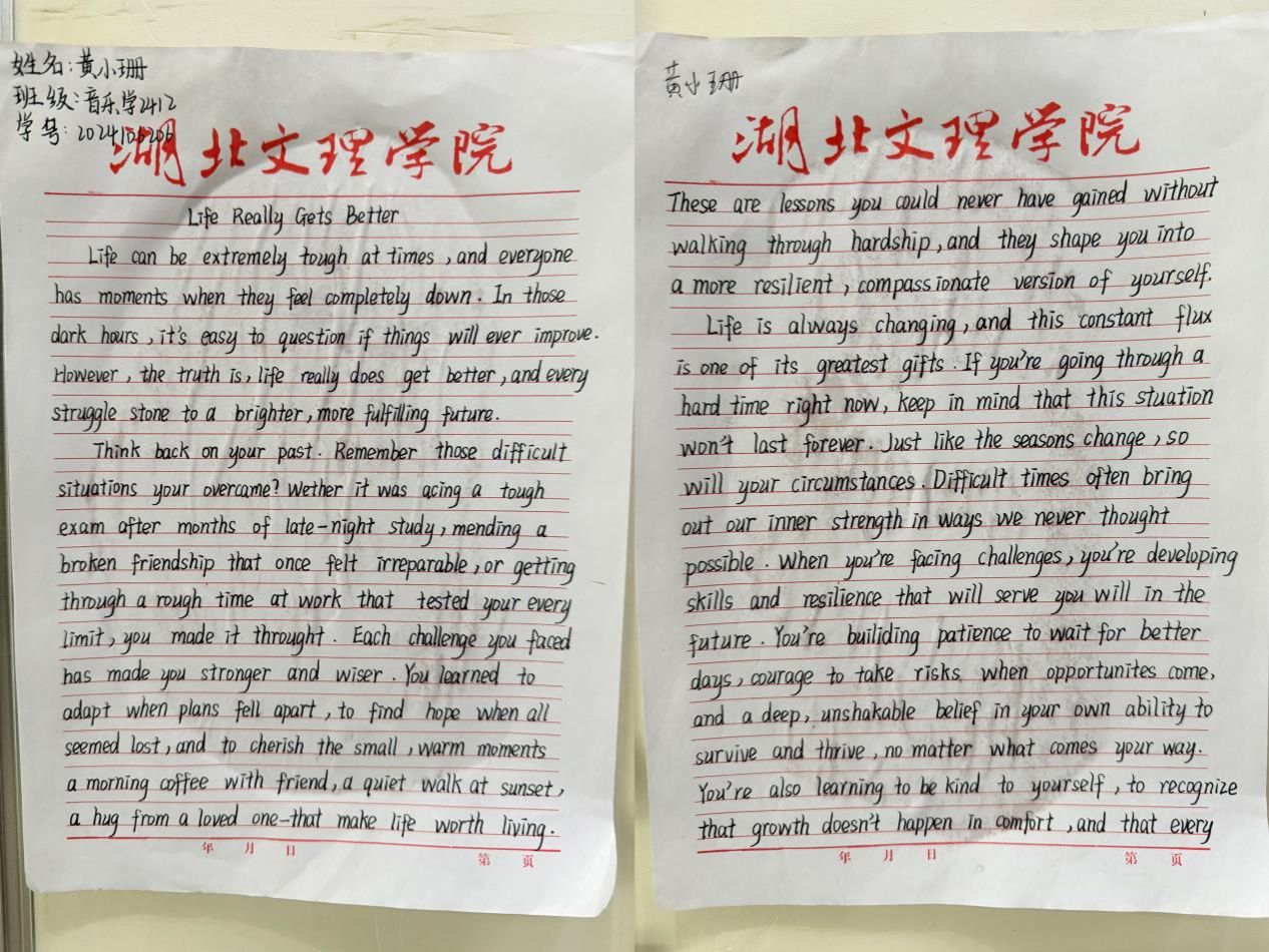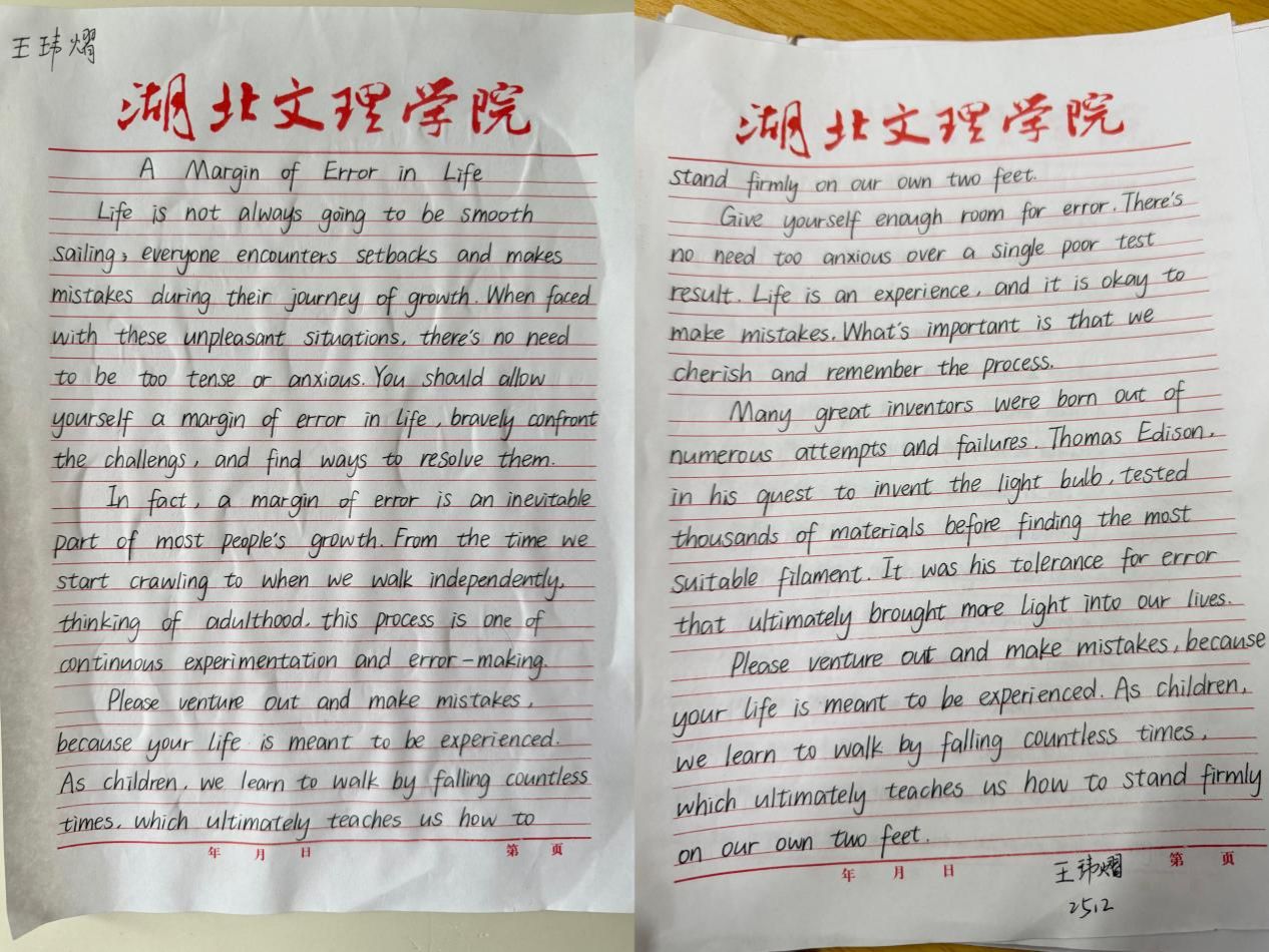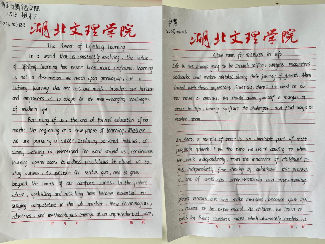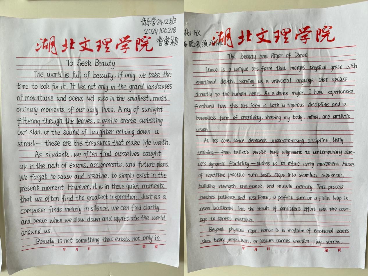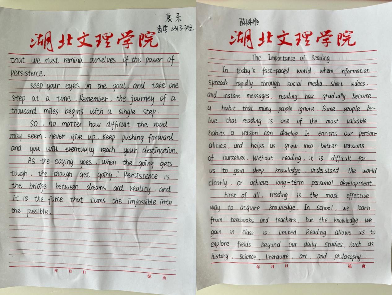 本次英文书写比赛有效提升了同学们的英文书写水平与审美素养。优秀作品现已在教学楼大厅、官方账号同步展出,浓厚书香浸润校园文化,以文化育人助力学子综合素养全面提升。